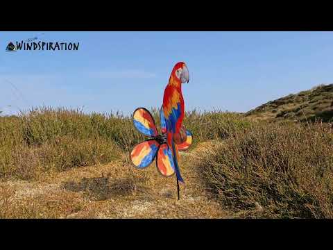 Deze vrolijke papegaai staat prachtig in tuin of op balkon, maar je kunt hem natuurlijk ook meenemen naar het strand of de camping. Hij is gemaakt van spinnaker nylon en draait heel soepel. De bloem staat schuin op de stok, waardoor hij er wat realistischer uit ziet. Hij heeft een aparte grondpen, die je in het gras kunt laten zitten wanneer je de haan 's avonds binnen haalt. De HQ Spin Critter Parrot - Windspel is gemakkelijk te monteren.